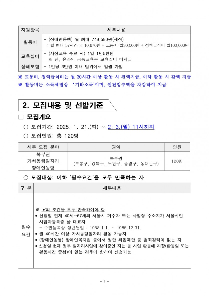 [안내] 2025년 서울시50플러스재단 권역 가치동행일자리 사업(북부권) 장애인동행(1차 공동모집) 작성자작성자 이유정 조회조회994회 작성일작성일25-01-21 11:29 본문 원본 출처: https://50plus.or.kr/appView.do?ANN_NO=1310&setPageIndex=1많은 관심과 참여 부탁드립니다~! 목록목록 이전글[교육] 의사소통 서포터 양성 교육 신청 25.02.12 다음글[안내] 음악활동 프로그램 강사 모집_하계장애인주간활동센터 25.01.17