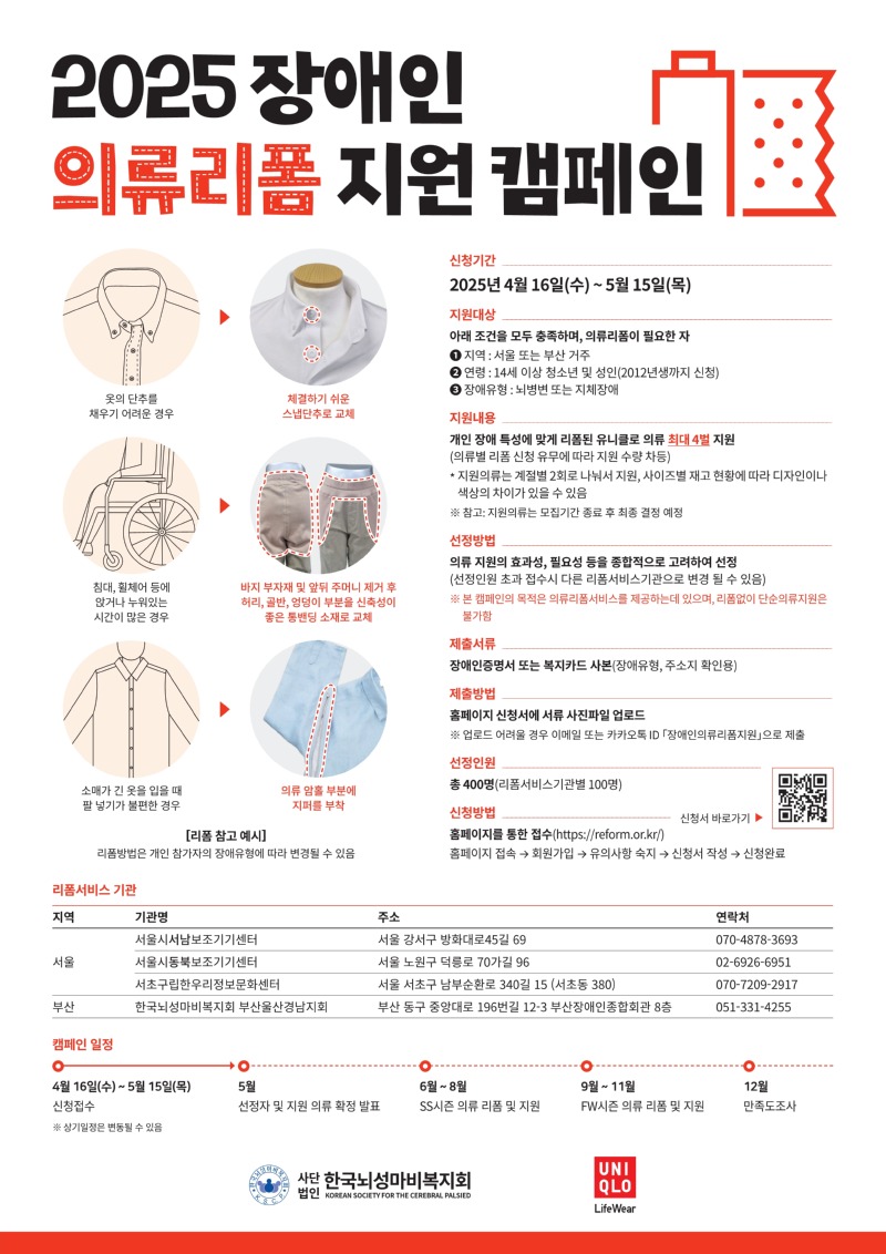 [안내] 2025 장애인의류리폼지원캠페인 접수 안내