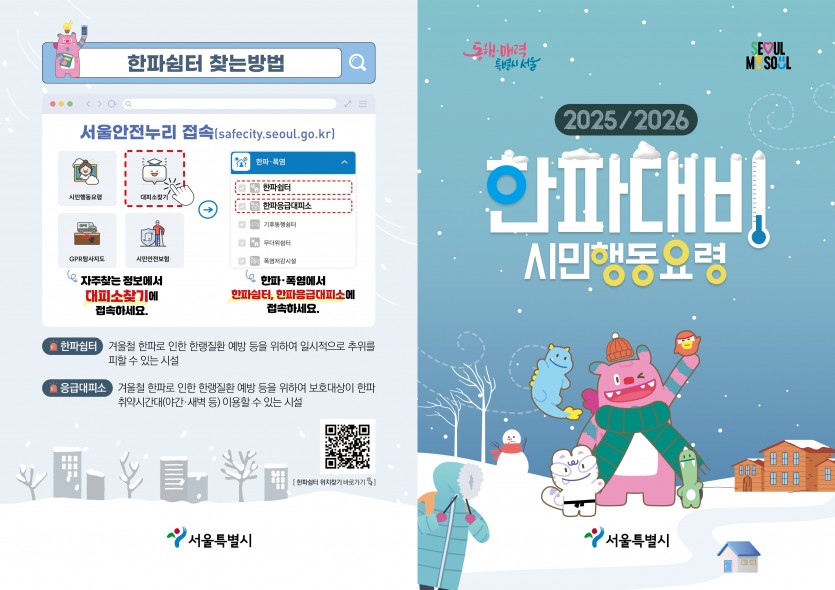 [안내] 서울시 한파 대비 시민 행동 요령 작성자작성자 이유정 조회조회107회 작성일작성일26-01-08 10:55 본문 목록목록 이전글서울시 최중증뇌병변장애인 낮활동지원사업 이용자 모집(강서뇌성마비복지관) 26.01.13 다음글[안내] 2026년 노원 장애인가족과 함께하는 눈썰매장 행사 25.12.29