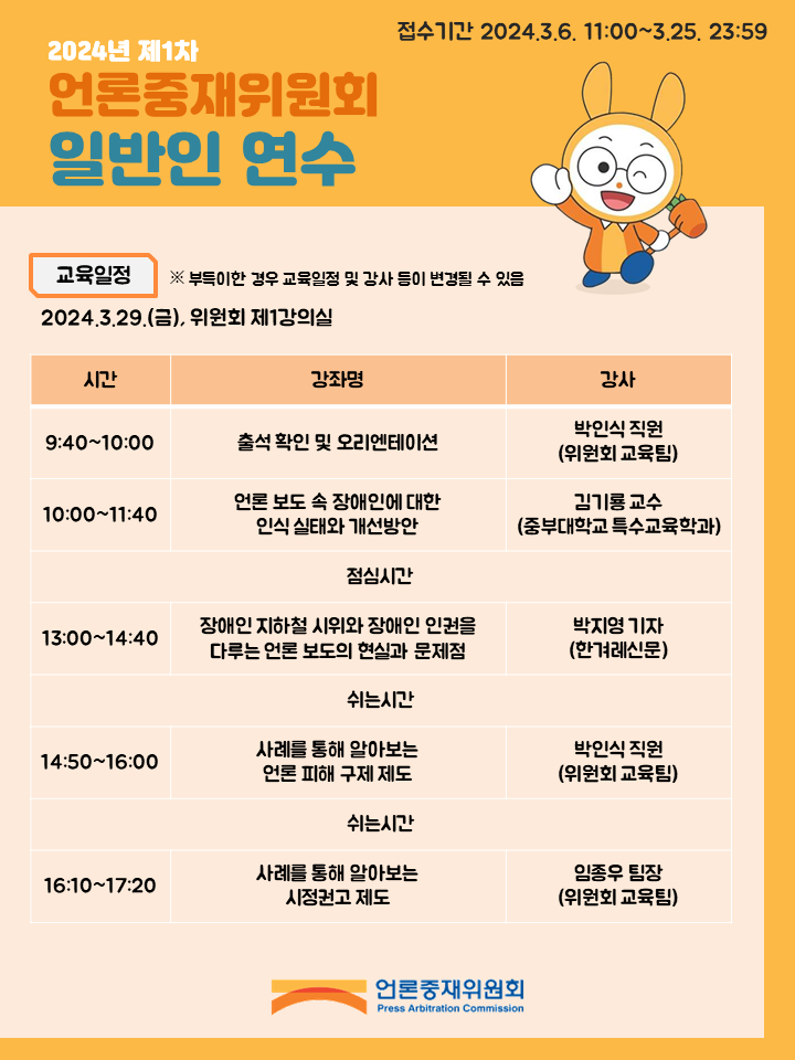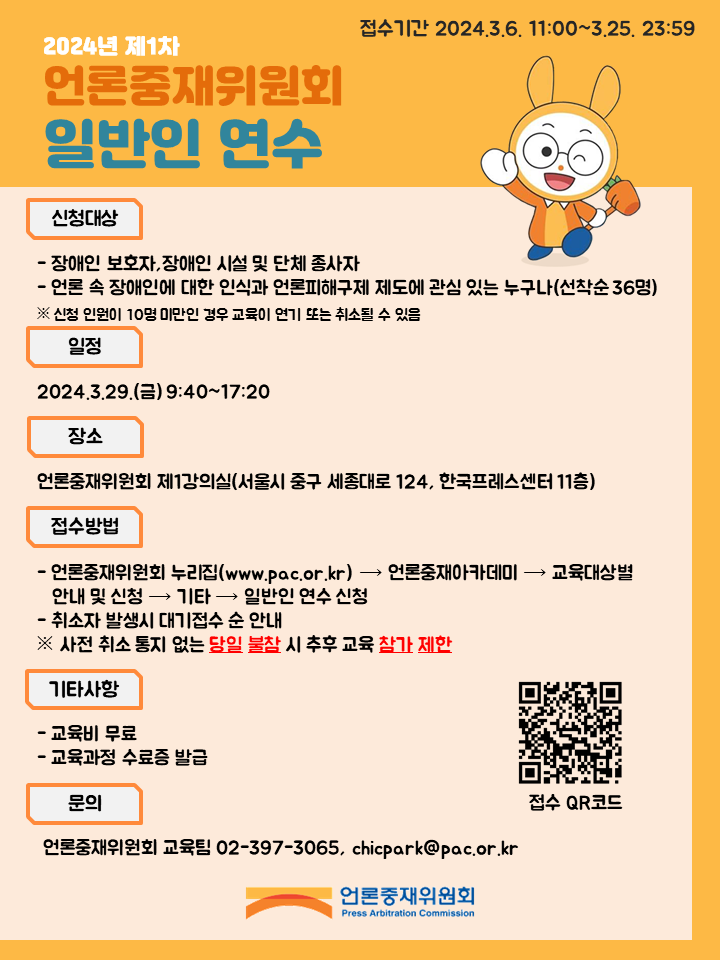 - 접수방법: 언론중재위원회 누리집 선착순 접수(선착순 36명)