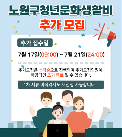 노원구청년문화생활비를 추가모집하고 있습니다.