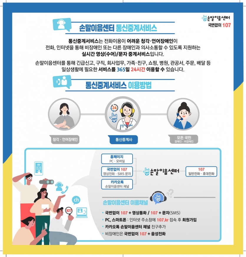 청각·언어장애인 통신중계서비스 「손말이음센터」 작성자작성자 이유정 조회조회90회 작성일작성일26-03-03 10:08 본문 목록목록 이전글장애인 보조견의 권리 보장 26.03.03 다음글서울시 최중증 뇌병변장애인 낮활동 지원사업 이용자 모집 재안내(강서뇌성마비복지관) 26.02.26