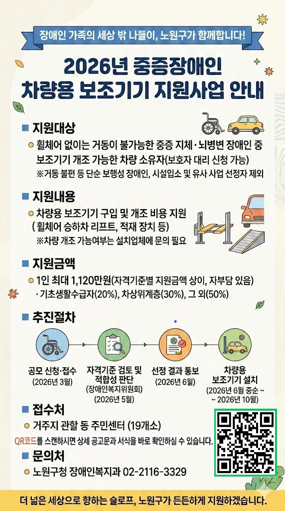 2026년 장애인 차량용보조기기 지원사업 신청 작성자작성자 이유정 조회조회90회 작성일작성일26-03-06 10:06 본문 첨부 파일 2026년 장애인 차량용보조기기 지원신청서류 3.hwp (76.5K) 목록목록 다음글[서울시50플러스재단/북부권 장애인동행] 참여자 모집 26.03.03