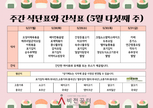 - 다음글주간 식단표와 간식표(5월 넷째 주) 24.05.21