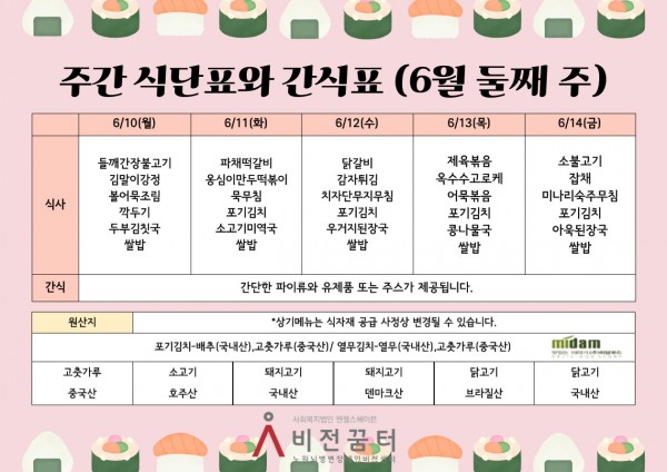 - 다음글주간 식단표와 간식표(6월 첫째 주) 24.05.31