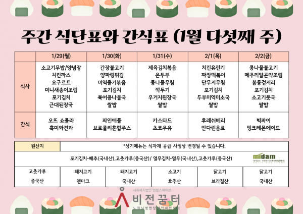 - 다음글주간 식단표와 간식표(1월 넷째 주) 24.01.24