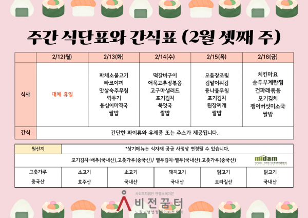 - 다음글주간 식단표와 간식표(2월 둘째 주) 24.02.05
