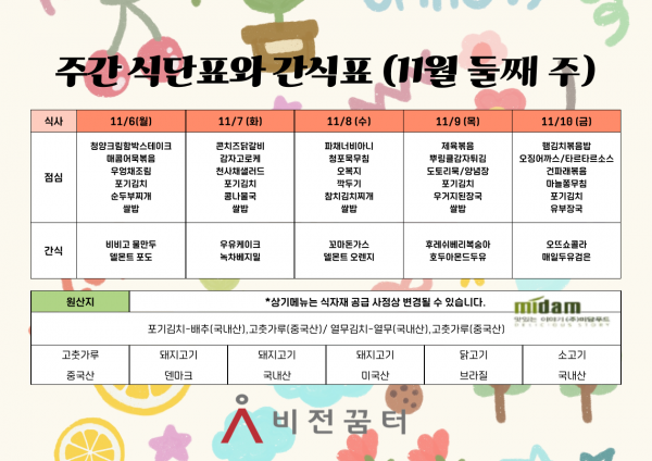 - 이전글주간 식단표와 간식표(11월 셋째 주) 23.11.09