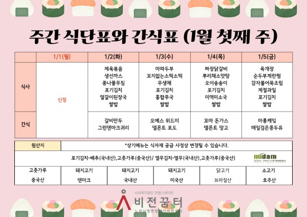 - 이전글주간 식단표와 간식표(1월 둘째 주) 24.01.05