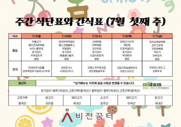 - 이전글주간 식단표와 간식표 (7월 둘째 주) 23.07.07